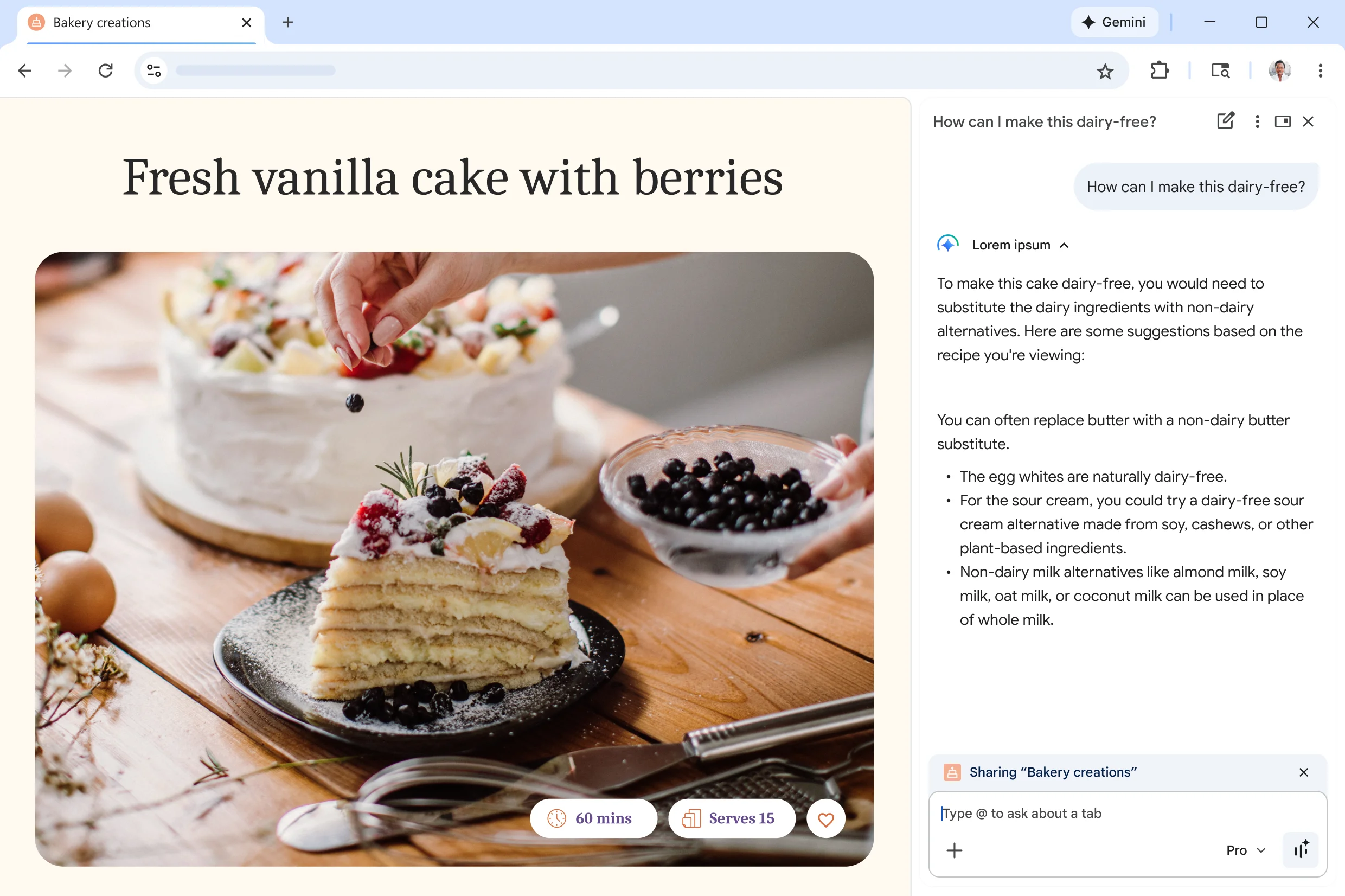 Just like on your computer, Gemini on mobile is there to answer questions about what you're reading. On Android it works with anything on your screen* - including Chrome. On iOS, we built Gemini right into the Chrome app.